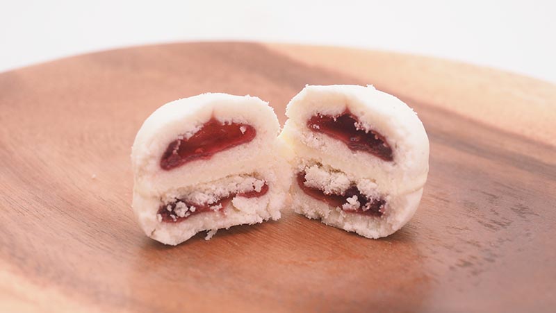 “Shirogane Santa”, a rice flour cookie made by Gato Senka locates in Mitsuke City, Niigata Prefecture. The rice is from the local and it sandwich rasberry sauce, a very pretty looking confection.