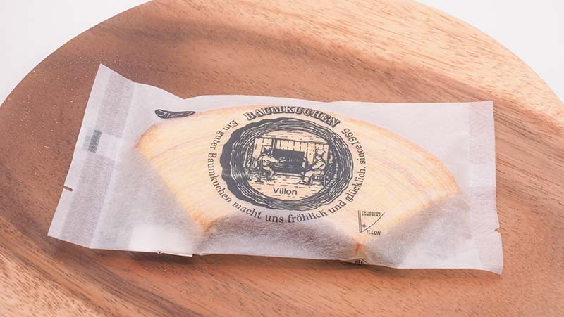 The crispy texture yet strangely fresh texture of the dough and tastes the rich flavor of the eggs. It reminds us this is a traditional baumkuchen. It is an authentic taste.