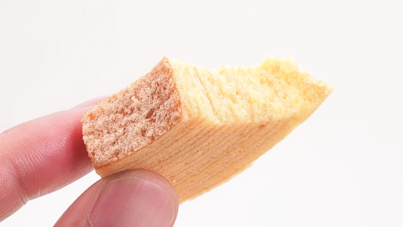 Looking at the cross section, each layer of dough looks very thin compared to general baumkuchen.