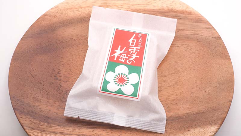 Choeido in Yamagata Prefecture is a Japanese confectioner with a long history more than 130 years, and is famous for their “Fuki-mame“. “Shirayuki-no-Ume” is also their one of products. This is a confectionary wrapped a plum agar in gyuhi (kind of rice cake made from glutinous rice).