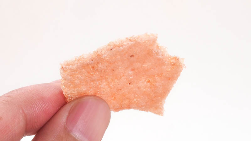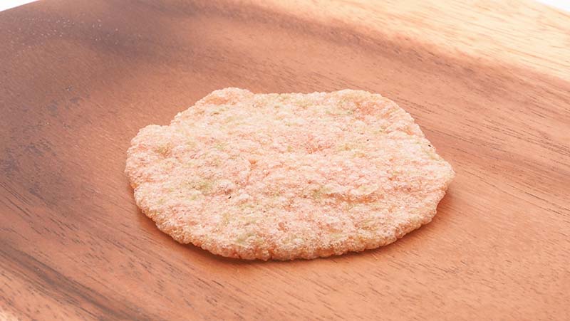 The rice crackers are light in texture, thin, and have a savory aroma.