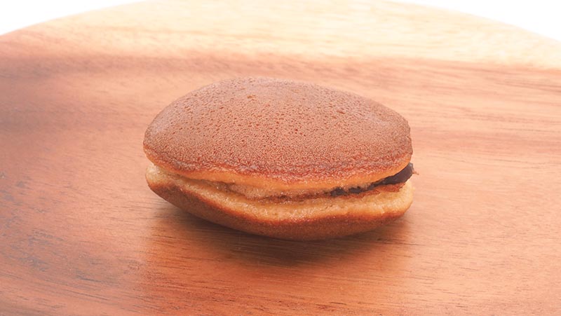 It looks like a “dorayaki,” but it is about two-thirds the size of a typical dorayaki, and has a cute round shape.