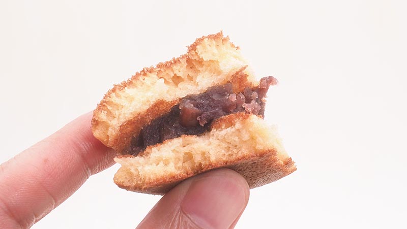 It is filled with sweet bean paste and is a thick, and bouncy crust. The shape is somewhat reminiscent of a hamburger.