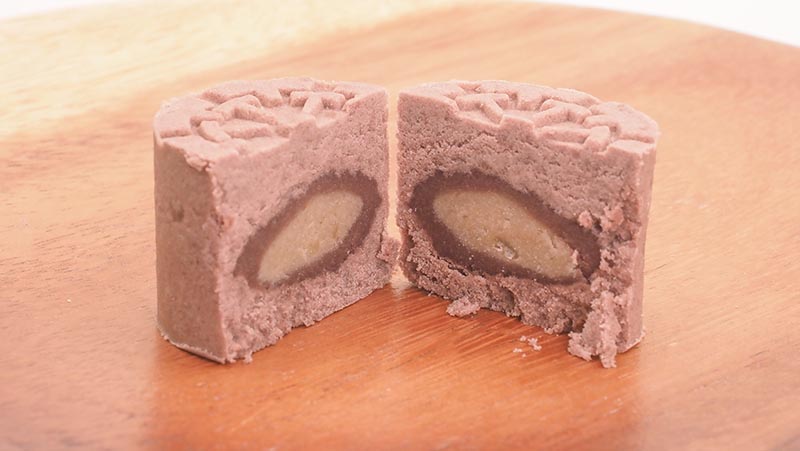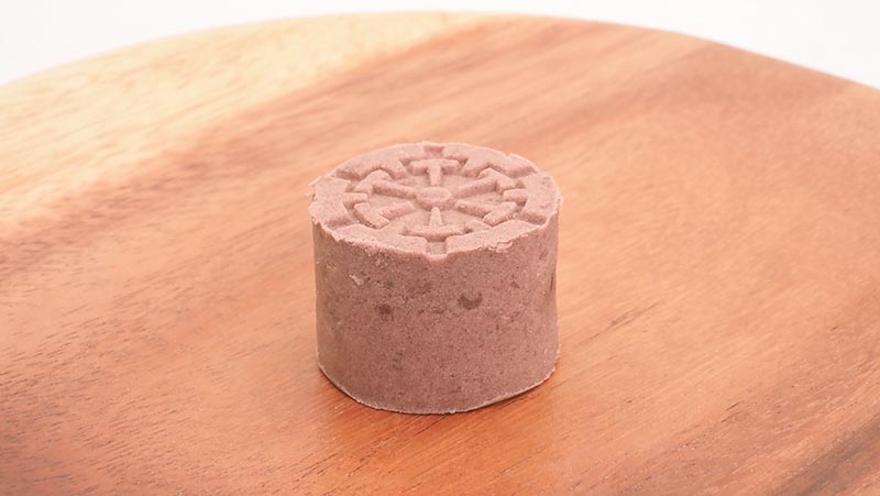 It is made of silky textured bean paste pressed into a wheel pattern.