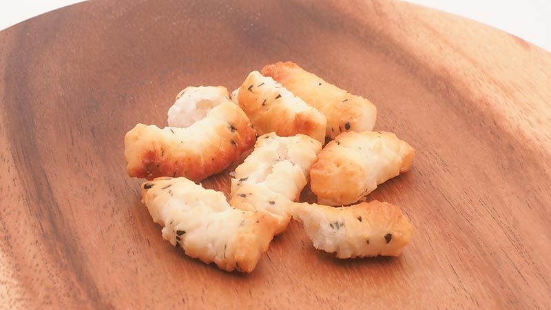 Used 100% locally grown glutinous rice crackers without any artificial coloring. Toyama Prefecture is renowned for its rice production, and the rice crackers baked to a rich golden brown.