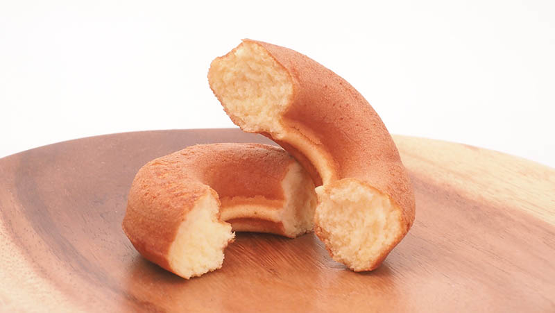 Plain sweet with certain egg flavor and fluffy baked doughnut