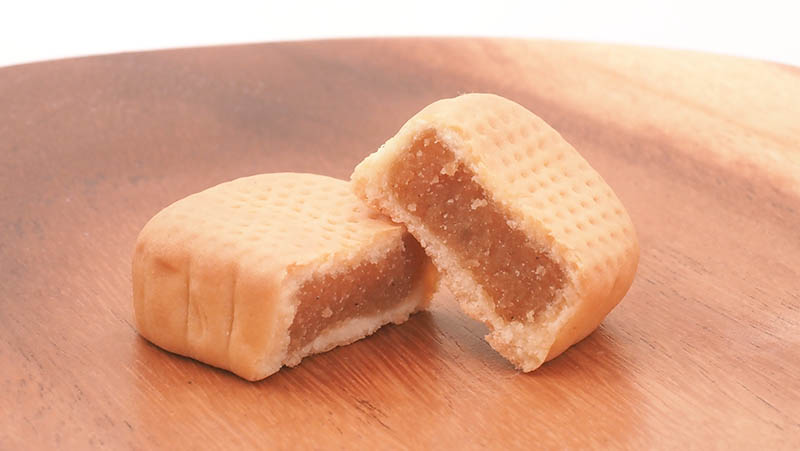 A caramel pudding flavored red bean paste is filled in. A vanilla flavor in the dough and the caramel pudding arpoma go well together.